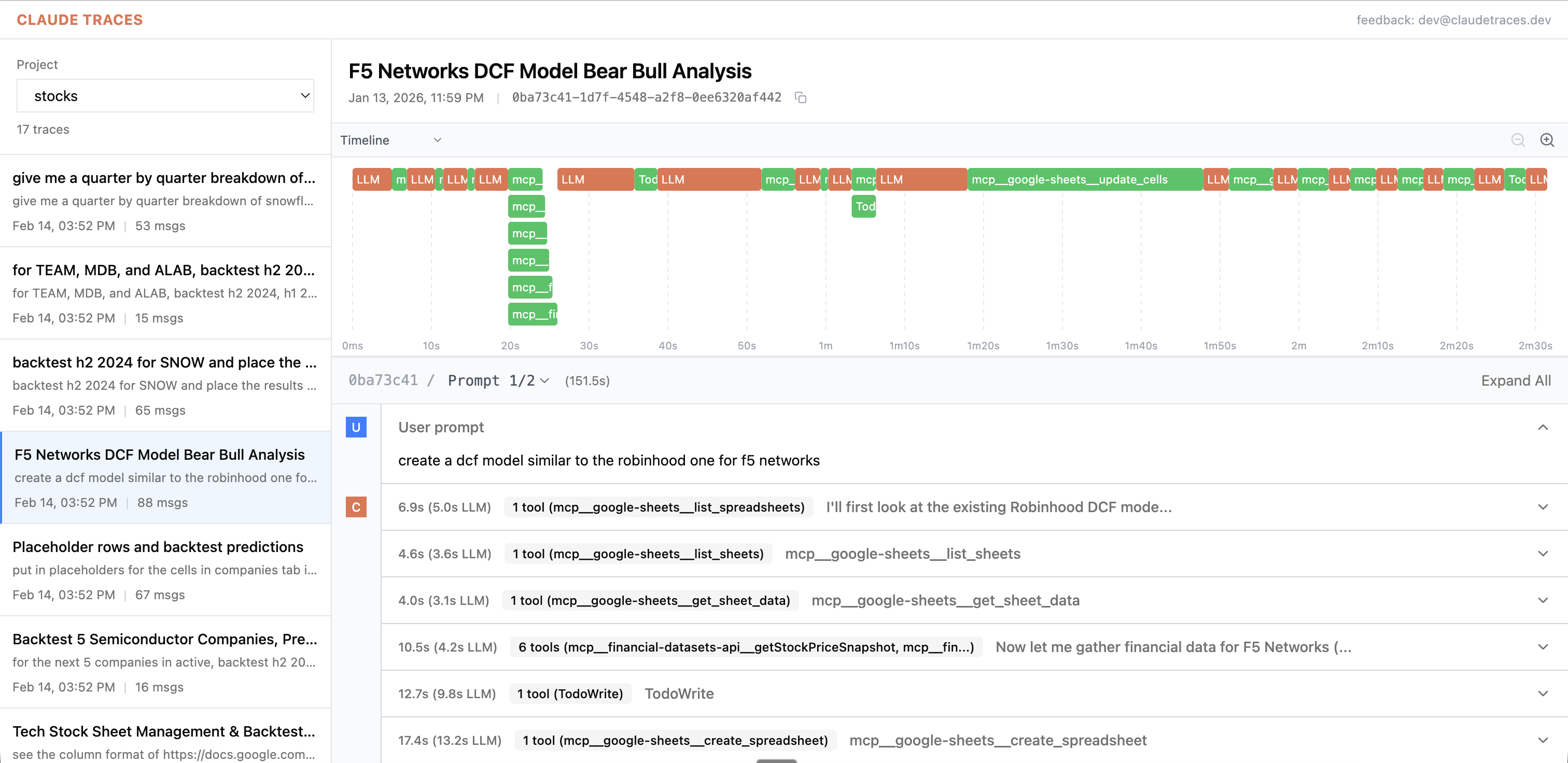 The npx command will read your traces from ~/.claude/projects and display them at localhost:3000